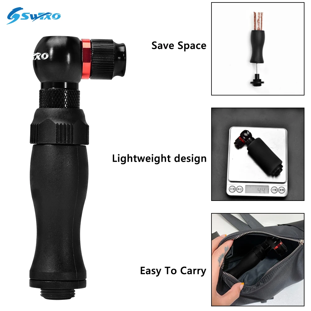 «SWTXO Mini Hand CO2 Bike Pump 2 in 1 Air Inflator For Bicycle Schrader Presta Valve Adapter Bicycle Tubeless Tire Repair Tool» по лучшей цене на рынке! Всего за 14$ (1330рублей)