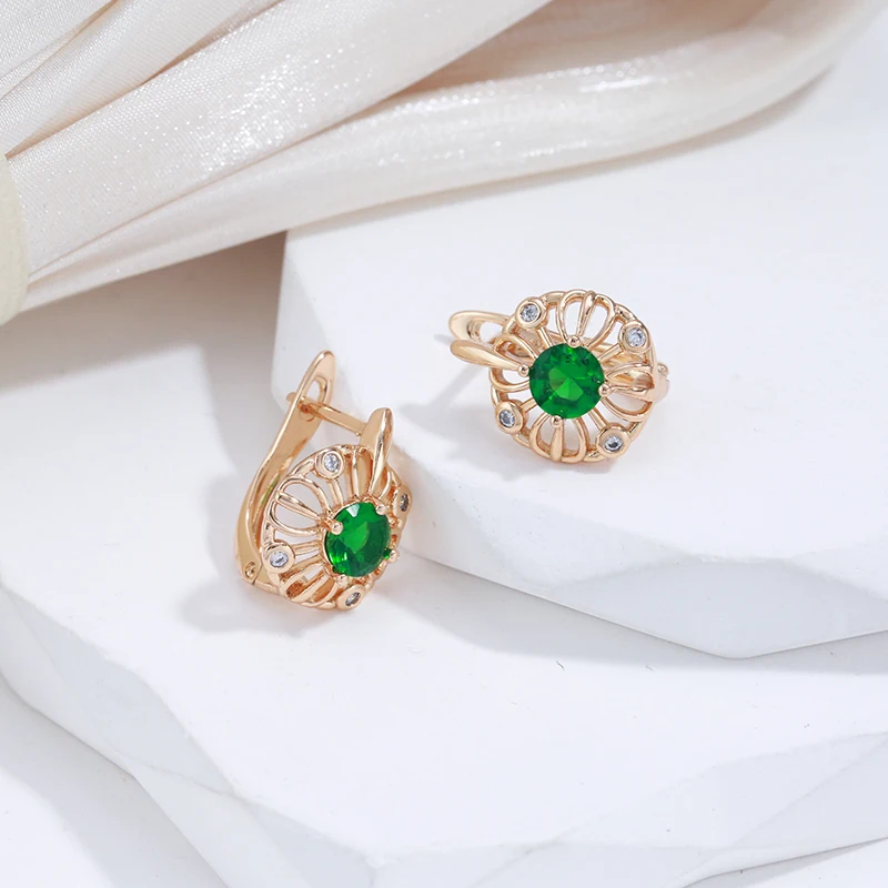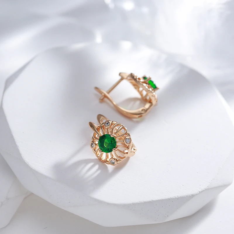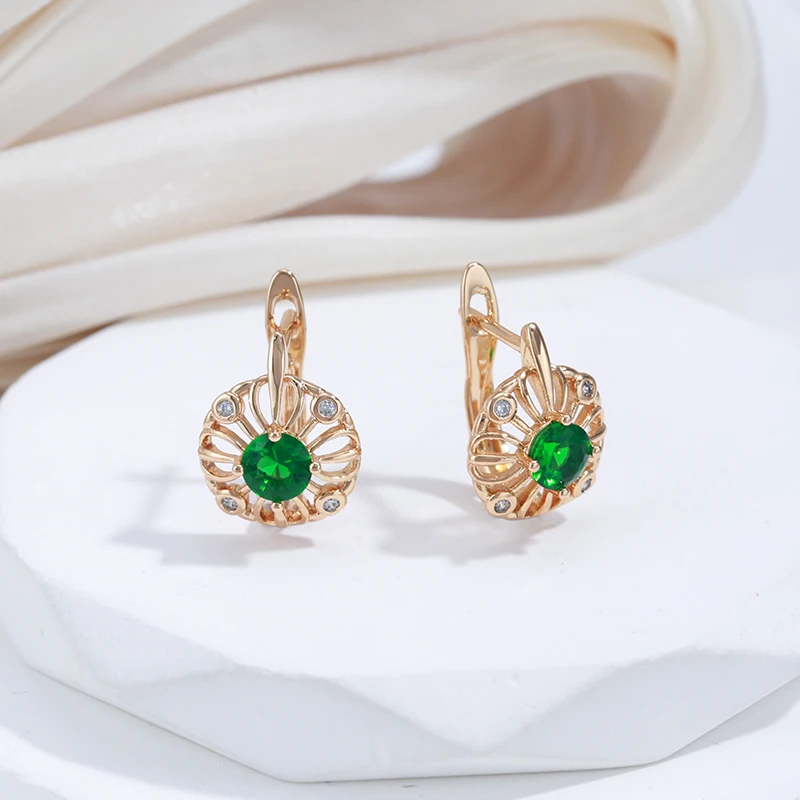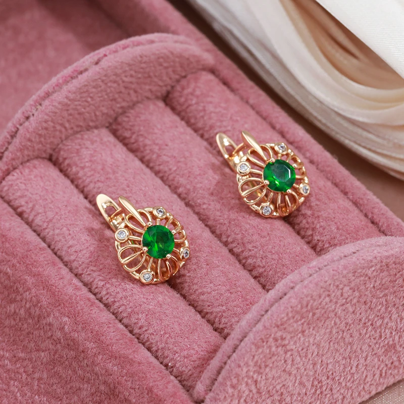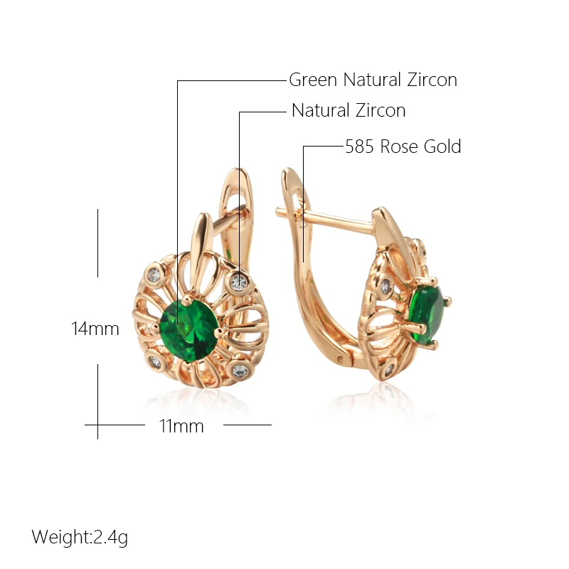 «SYOUJYO Shiny Green Natural Zircon Stud Earrings For Women 585 Rose Gold Color Vintage Jewelry Trendy Hollow Drop Earring» по лучшей цене на рынке! Всего за 4$ (380рублей)