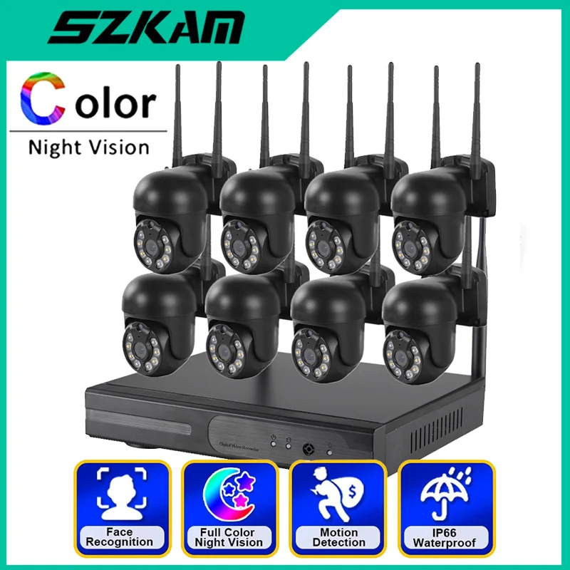 SZKAM NVR Wireless Wifi IP Camera 3MP Two Way Audio PTZ CCTV System Surveillance Kit Full Color Night Security Camera 4CH 8CH - Купить с бесплатной доставкой