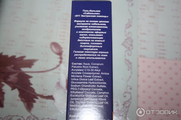 Сабельник 911 бальзам для тела инструкция Сабельник гель - инструкция по применению с мелиссой и хвощом полевым Самое высокое содержание экстракта Сабельника ! Охлаждающий гель создан на основе