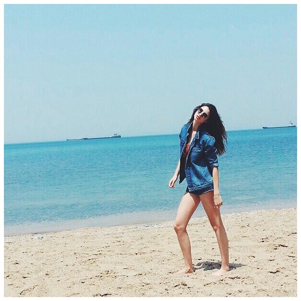 Сабина Ахмедова в купальнике с вырезом на груди вытянулась . . .