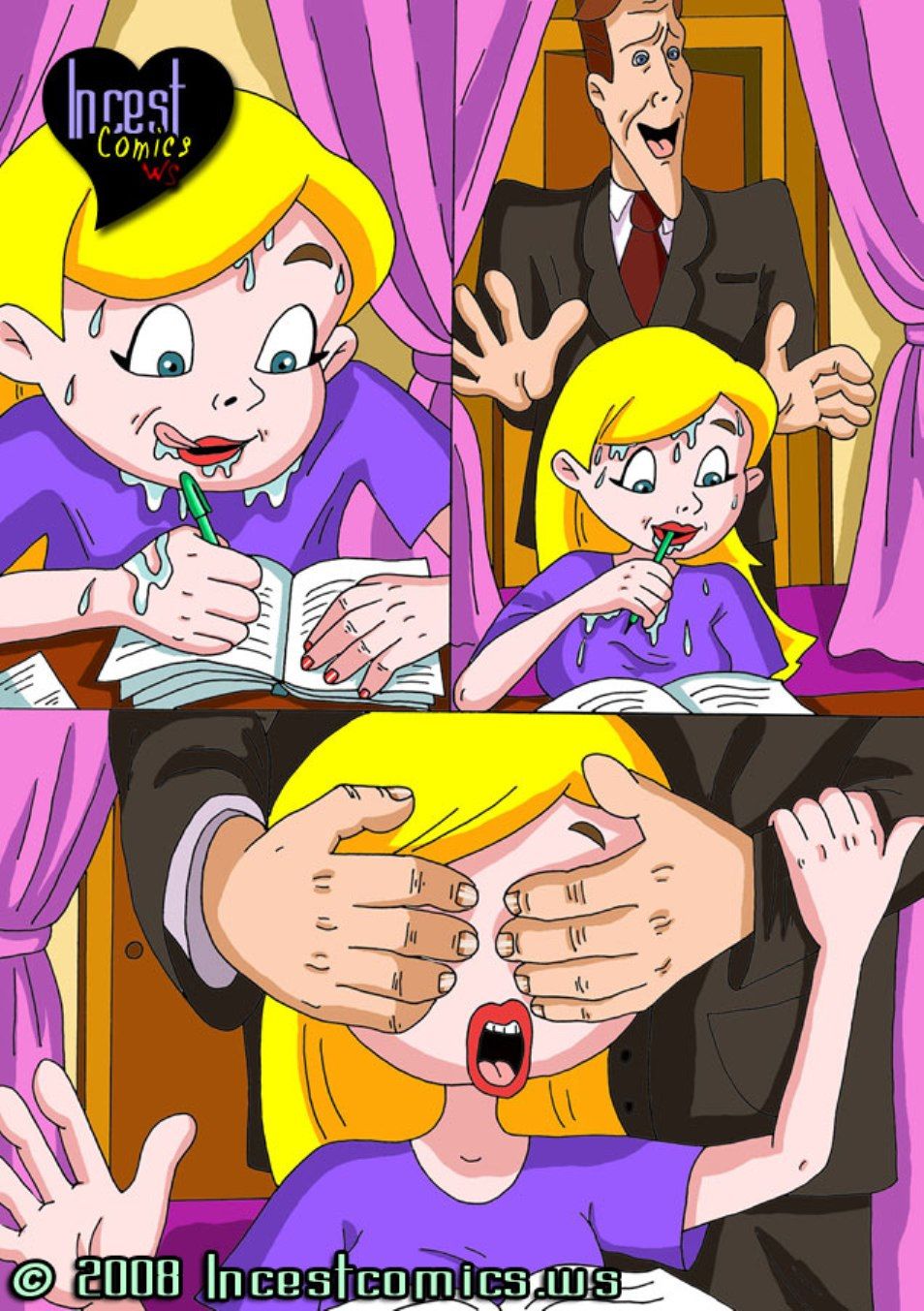 Step sucks while daughter dressing swallow