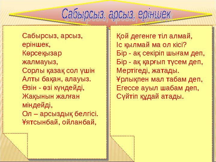 Сабырсыз арсыз еріншек өлеңі