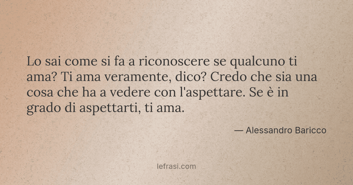 Lo sai come si fa a riconoscere se qualcuno ti ama? Ti ama veramente, dico? Credo che sia una cosa che ha a vedere con l'aspettare . Se è in grado di aspettarti, ti ama .