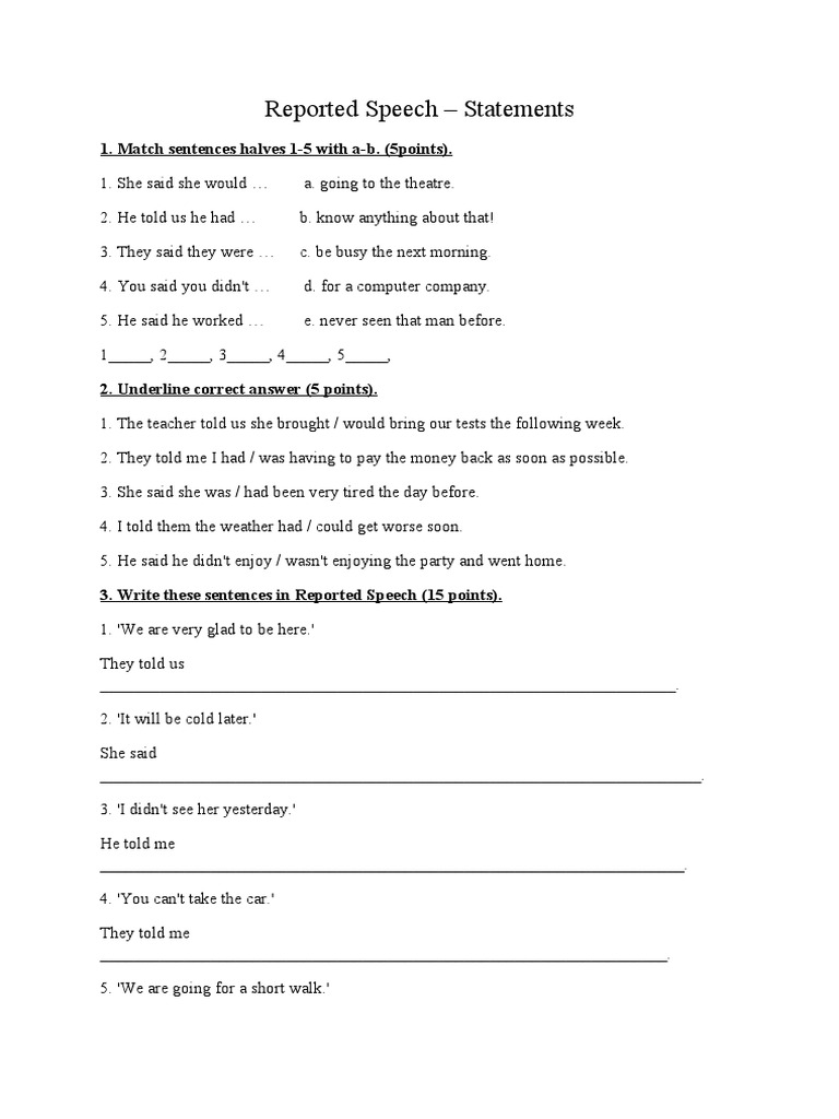 3 .She said that she is coming . 4 .She told me that she was waiting for the bus when he arrived . 5 .She said that she had never been there before . 6 .She told me that she didn't go to the party . 7 .She said that Lucy will come later . 8 .She told me that he hadn't eaten breakfast . 9 .She said that she could help me tomorrow . 10 .She told me that i . . .