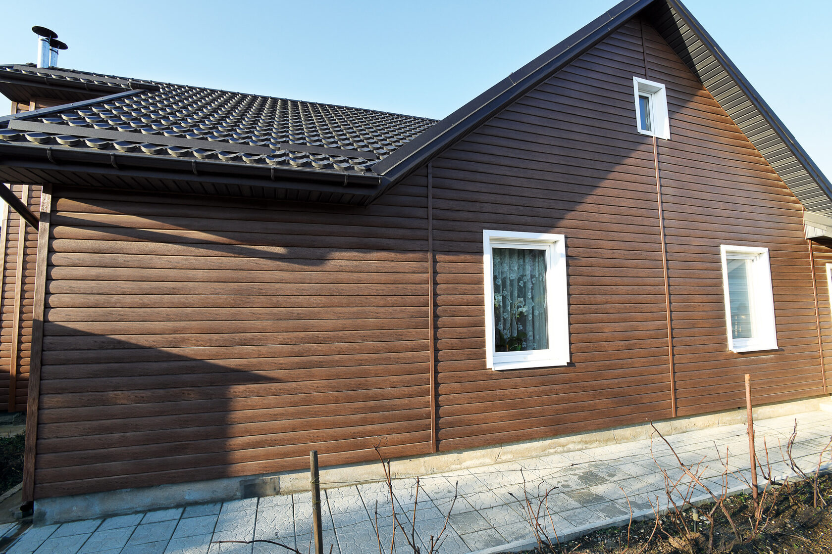 Дом Отделанный Сайдингом Файнбир Бежевый Фото