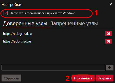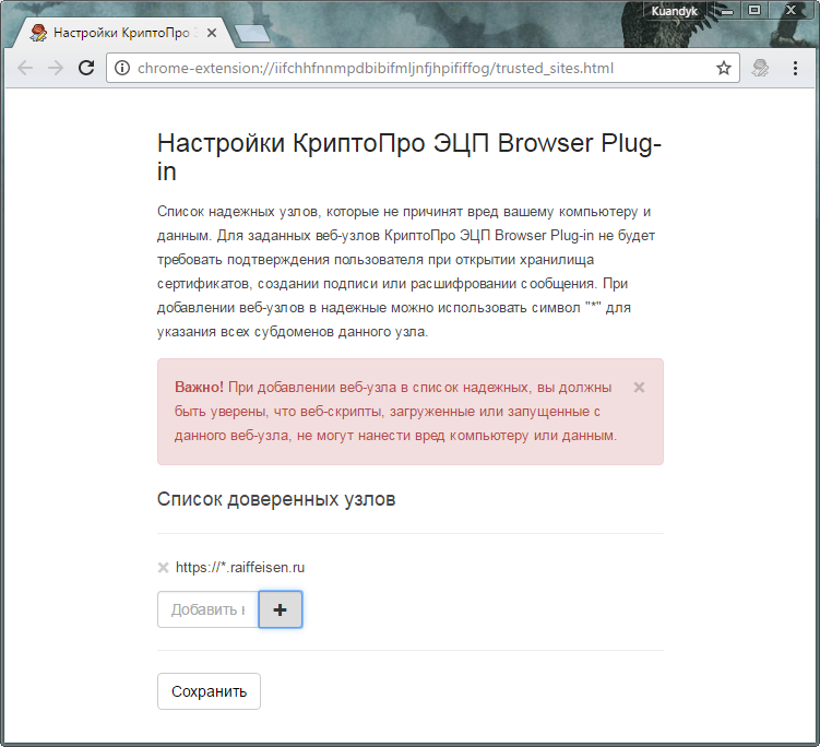 Сайт добавлен в список доверенных узлов