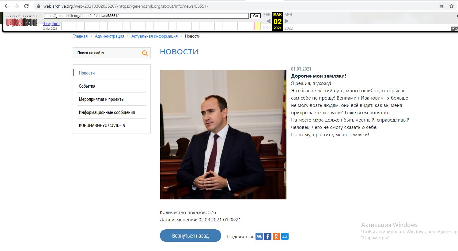 Сайт мэра обращения