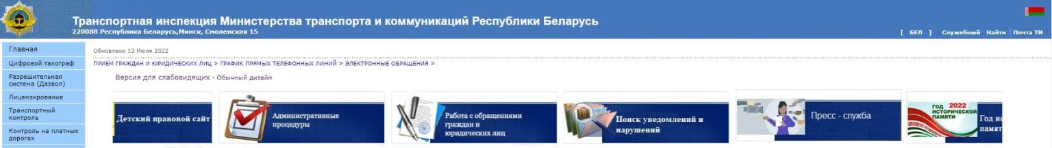 Сайт министерства транспорта рб