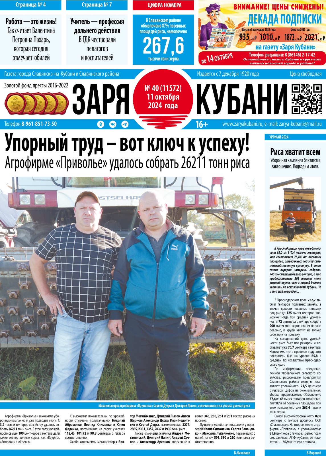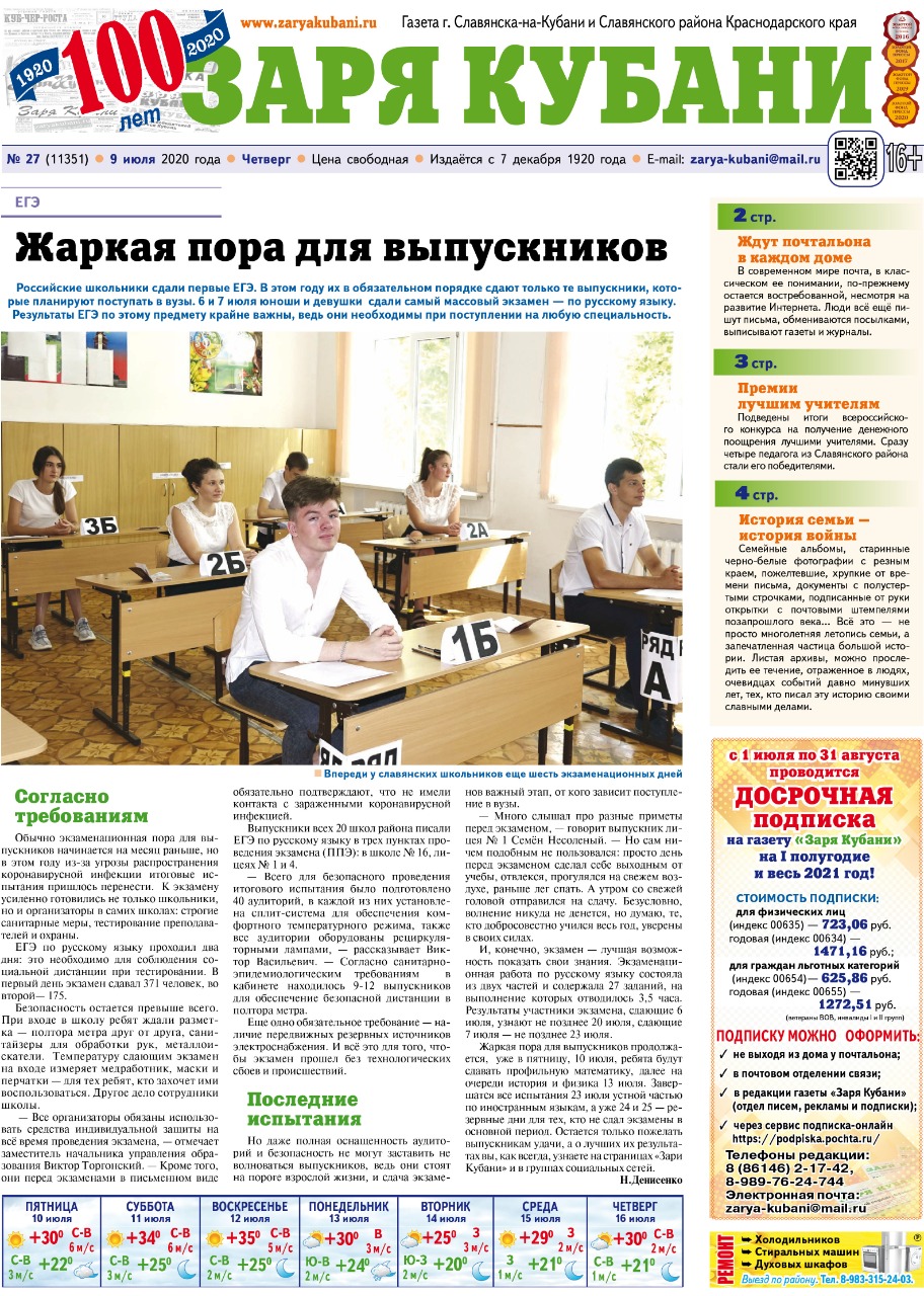 Сайт заря кубани