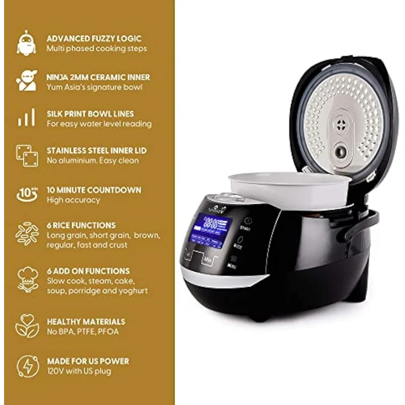 Sakura Rice Cooker with Ceramic Bowl and Advanced Fuzzy Logic (8 Cup, 1.5 Litre) 6 Rice Cook Functions, 6 Multicook Fu - Купить с бесплатной доставкой