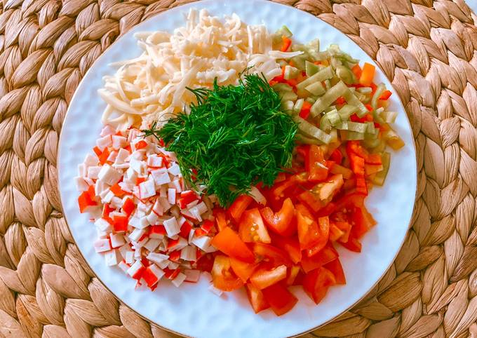 Как приготовить Салат «Красное море», пошагово, рецепт на 1105 ккал от автора Лялич . Салат «красное море», с ингредиентами: крабовые палочки, помидоры, перец болгарский красный, сыр твердый, чеснок