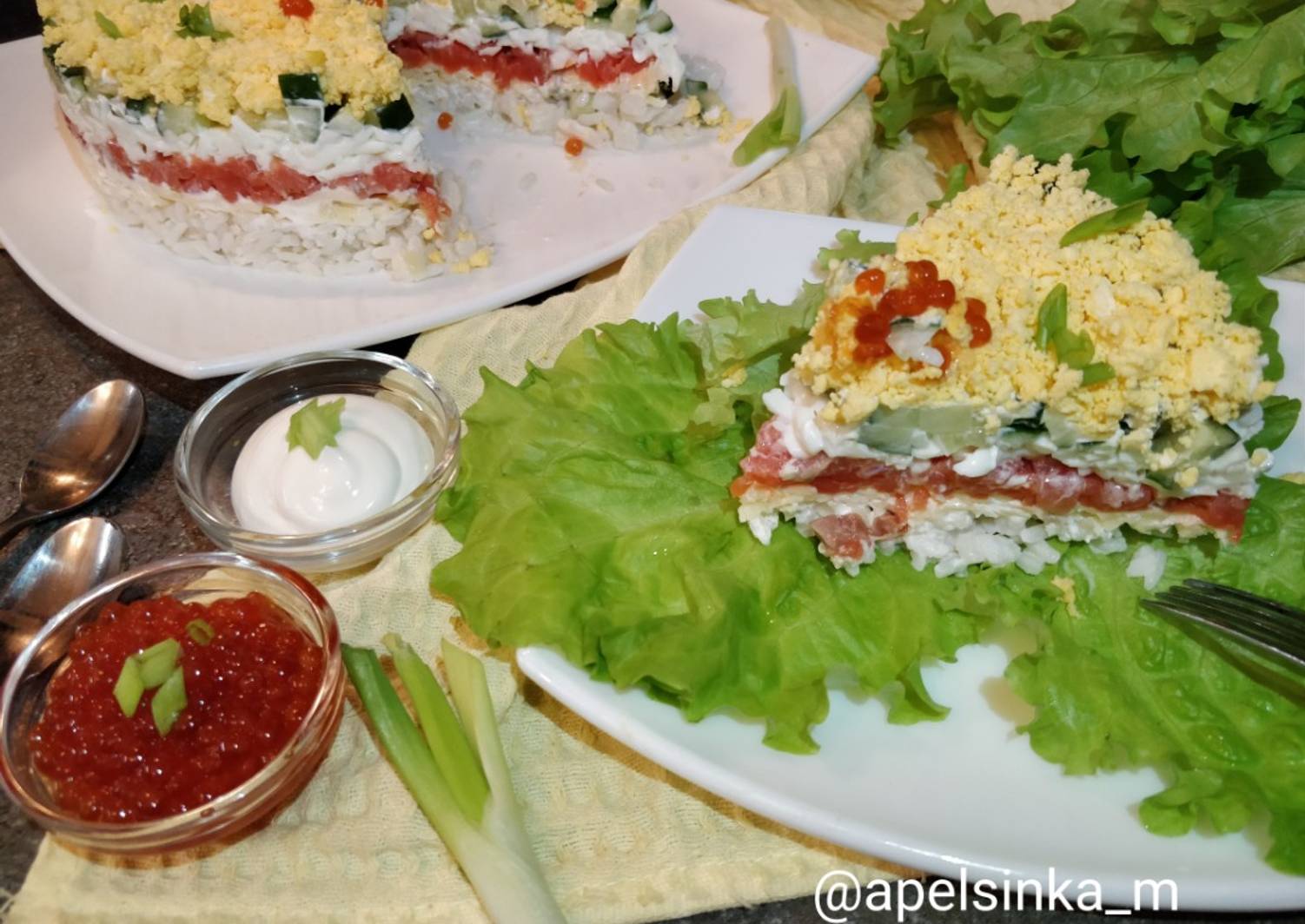 Салат с форелью рисом