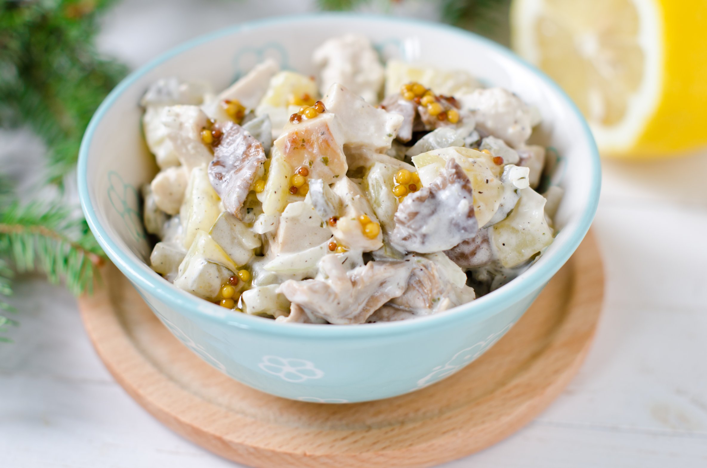 Салат с копченой курицей и горчицей