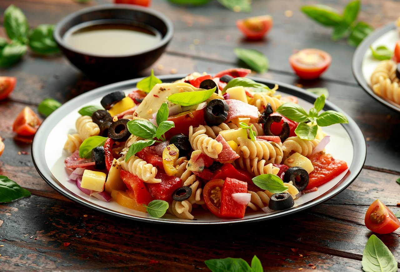 Салат с макаронами перцем