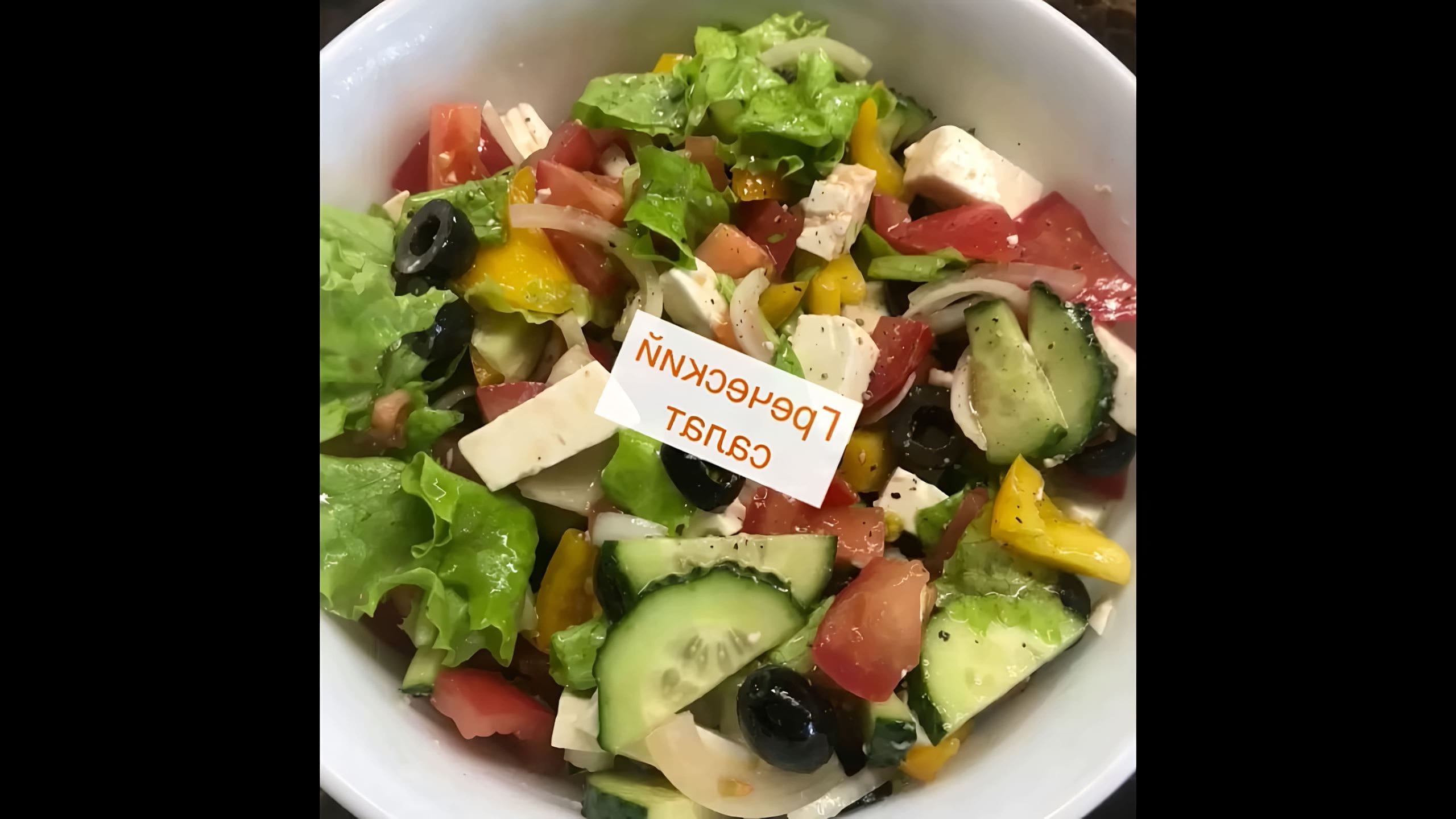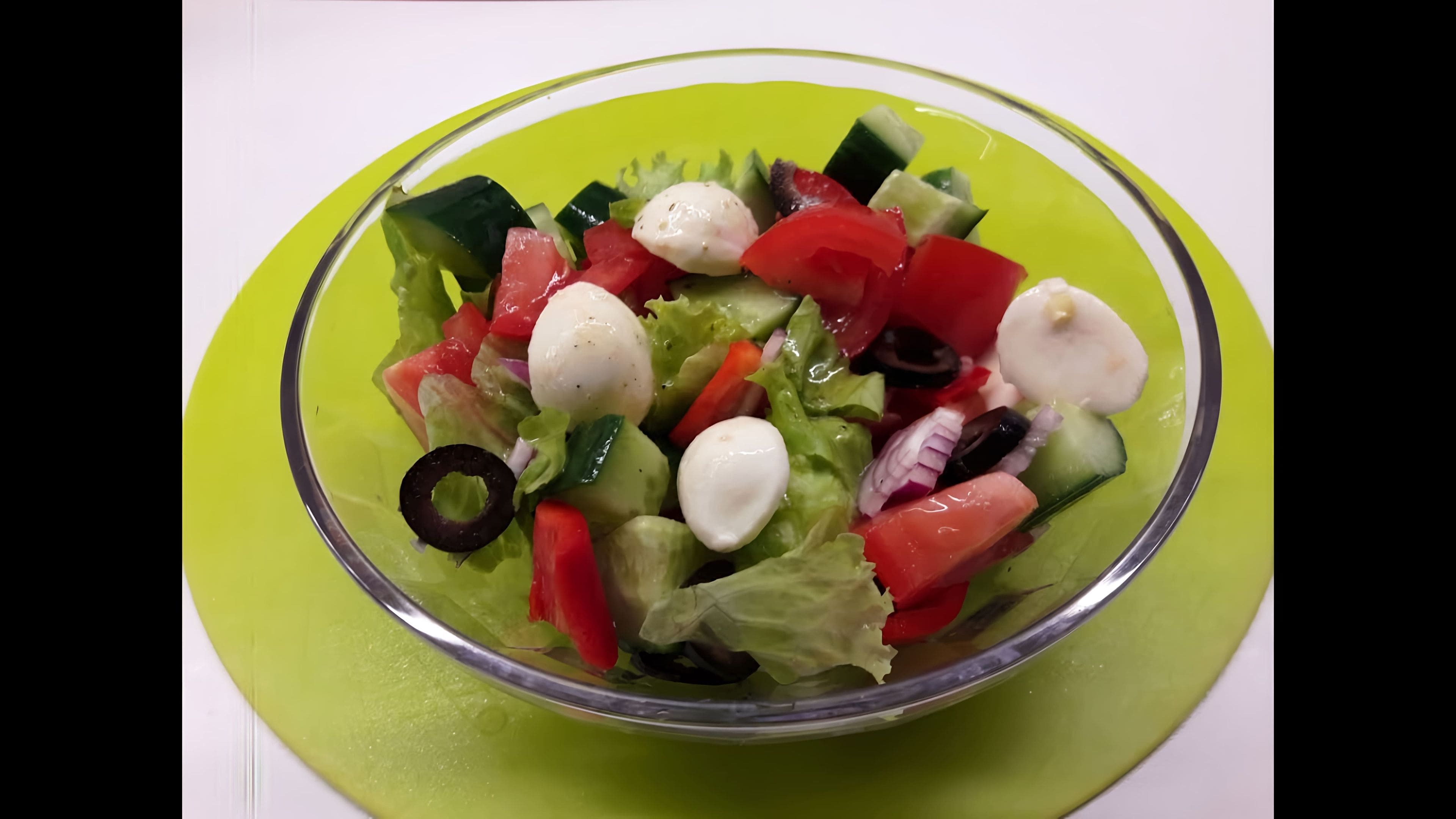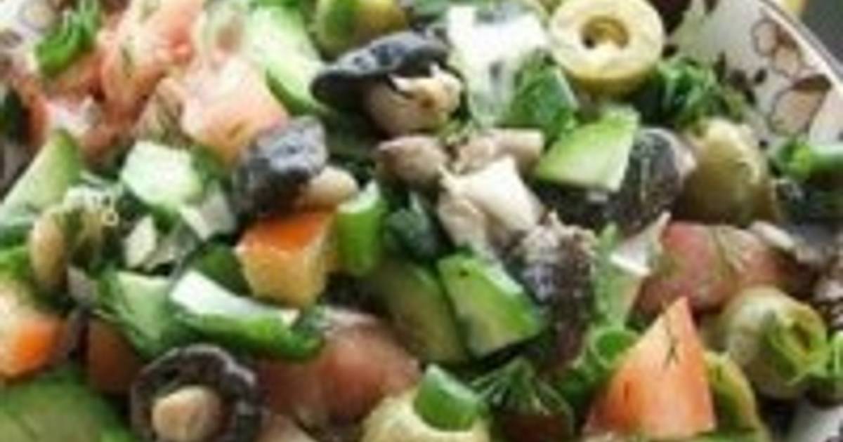 Салат с огурцом помидором маслинами