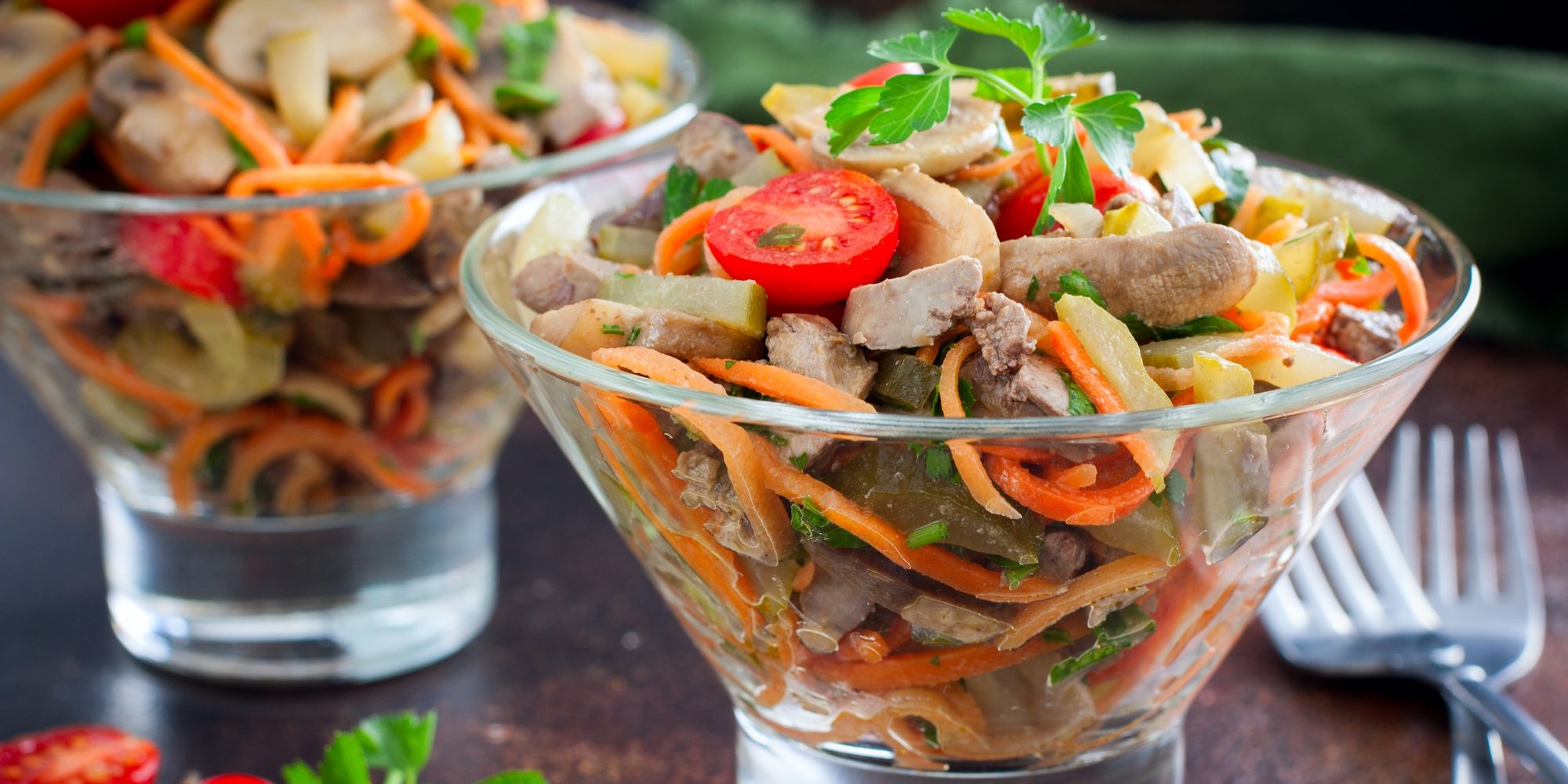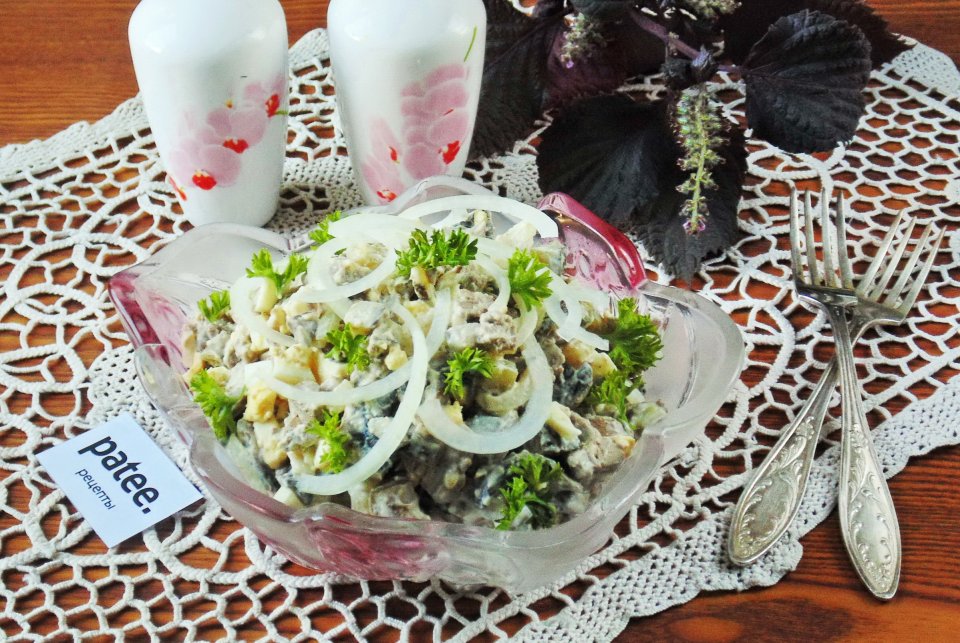 Салат с печенью огурцом и грибами 107 фотографий