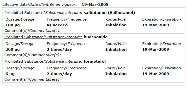 по правилам вада (всемирное антидопинговое агенство): "предполагается, что присутствие в моче сальбутамола более 1000 нг/мл или формотерола, превышающее 40 нг/мл, не является целевым терапевтическим использованием этого вещества и будет рассматриваться как неблагоприятный анализ (aaf), если спортсмен не докажет, через контролируемое …