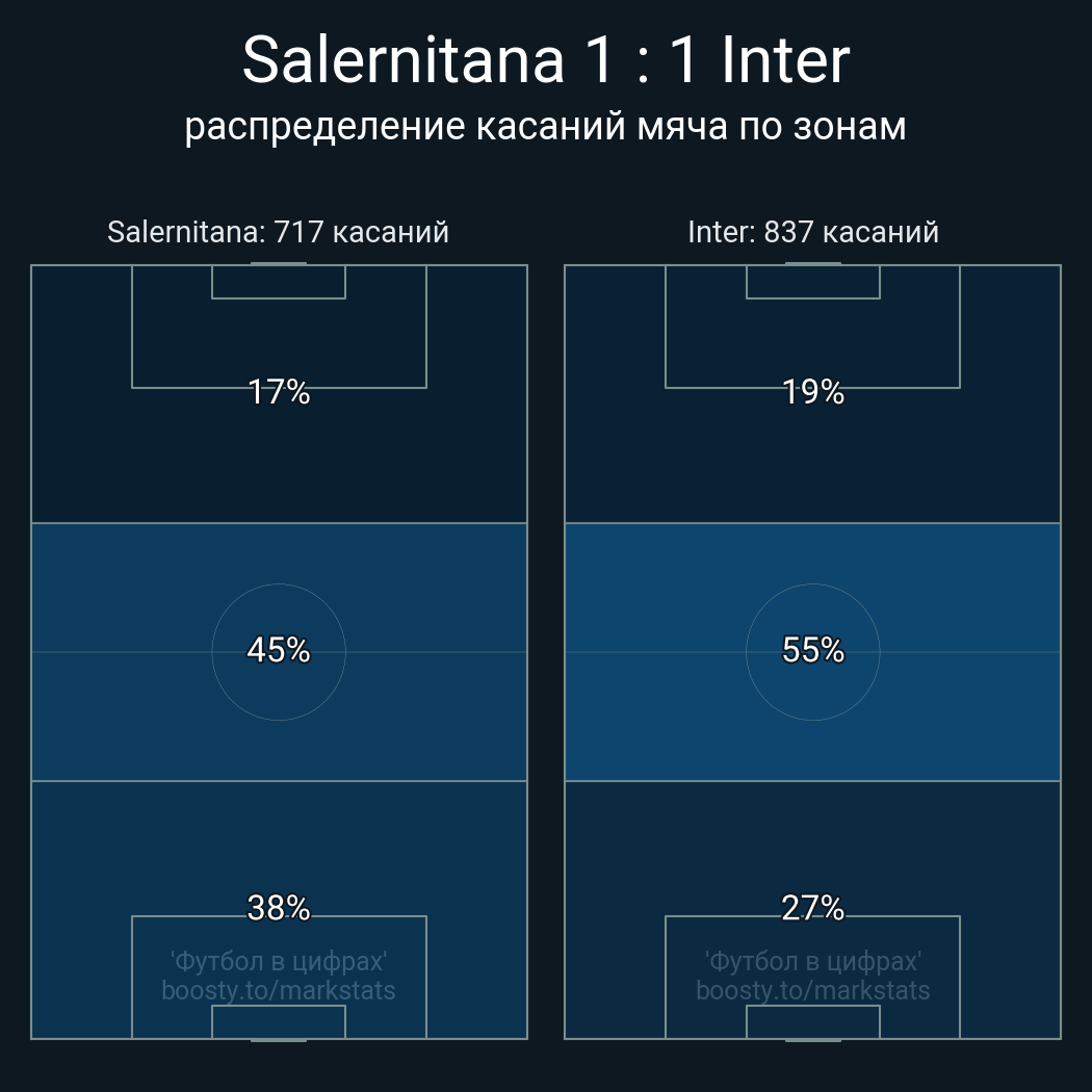 56 успешных передач из 58 попыток (3 с продвижением, 2 на трети соперника)