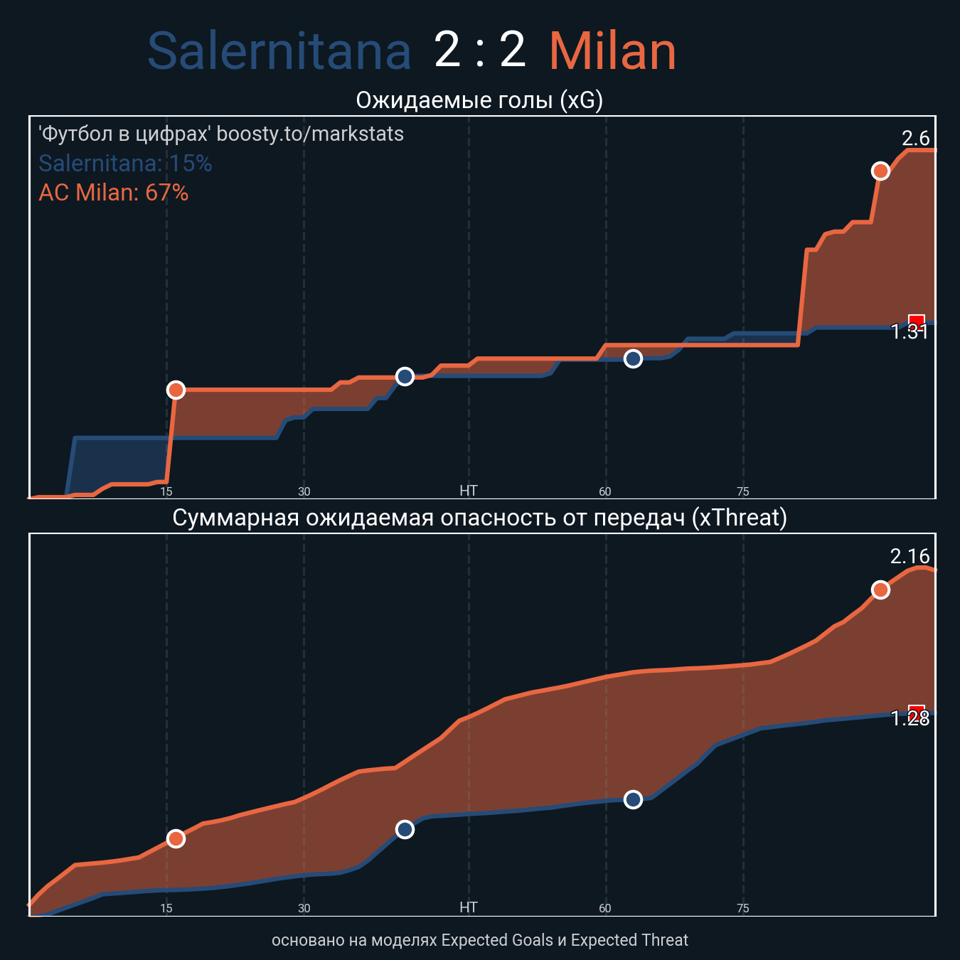 Ожидаемые голы (NPxG): 1.31 - 2.6