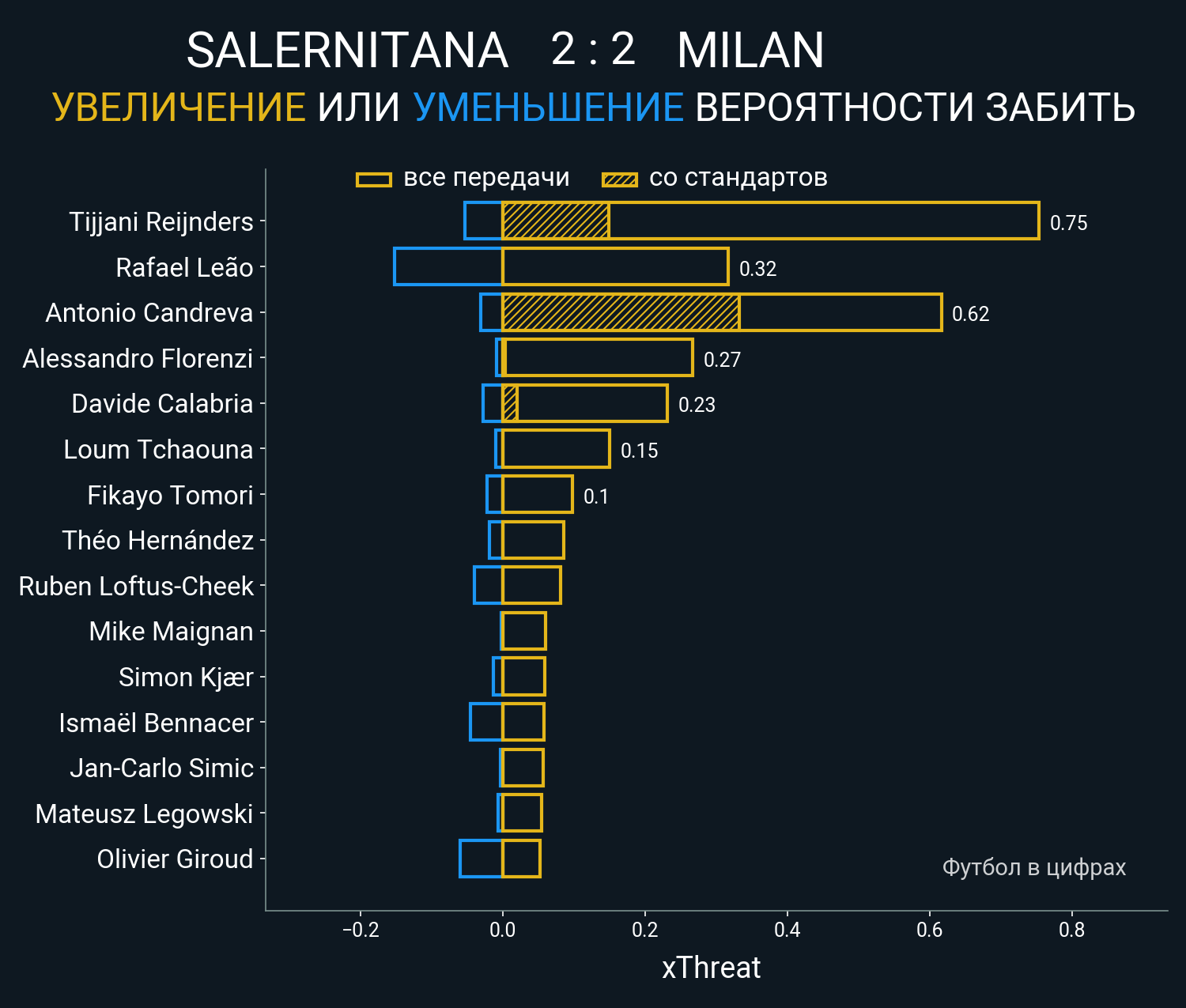 0.21 очка xT (+0.02 со стандартов)