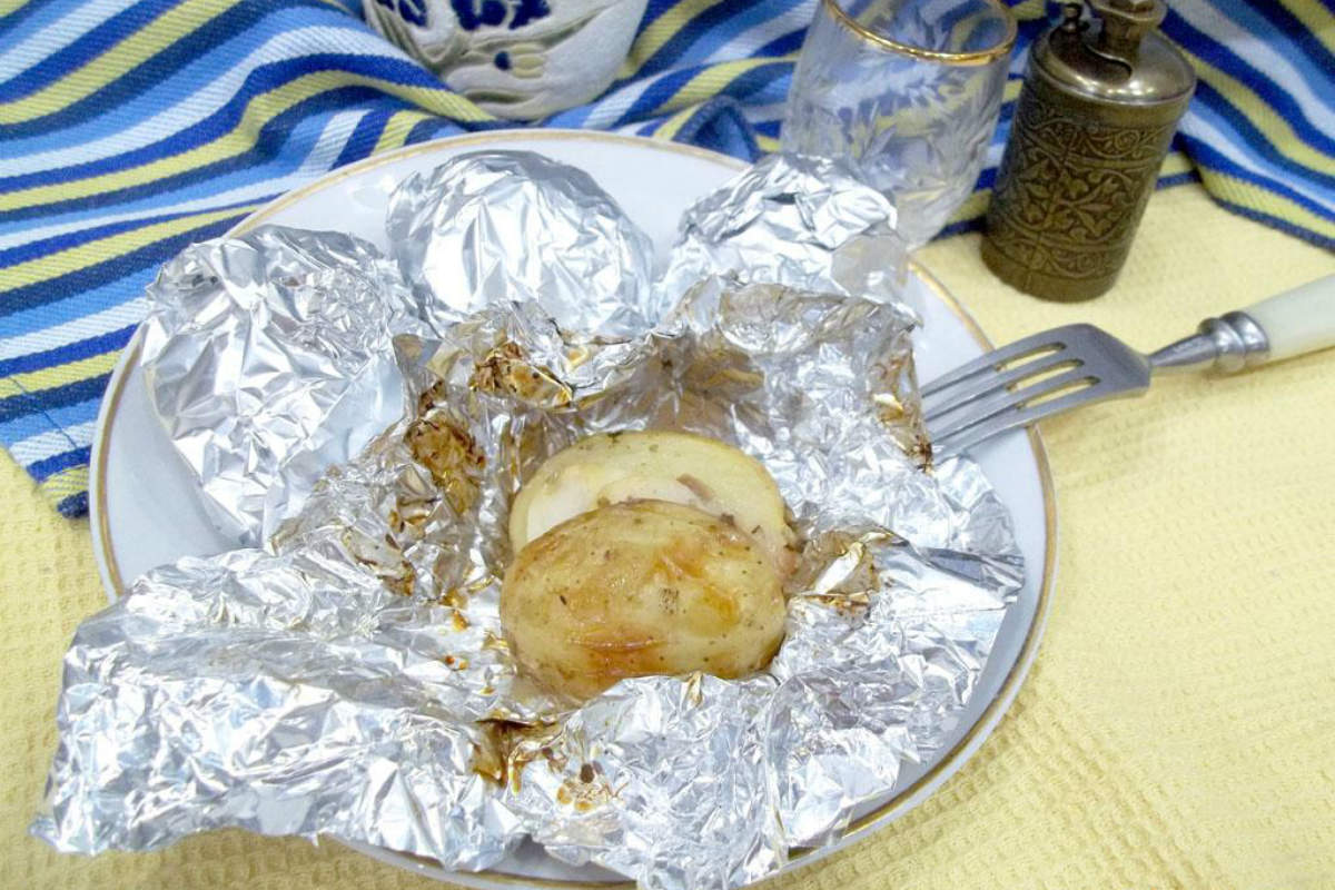Сало в фольге на костре