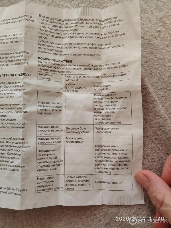 Свечи салофальк 500 мг отзывы о лечении