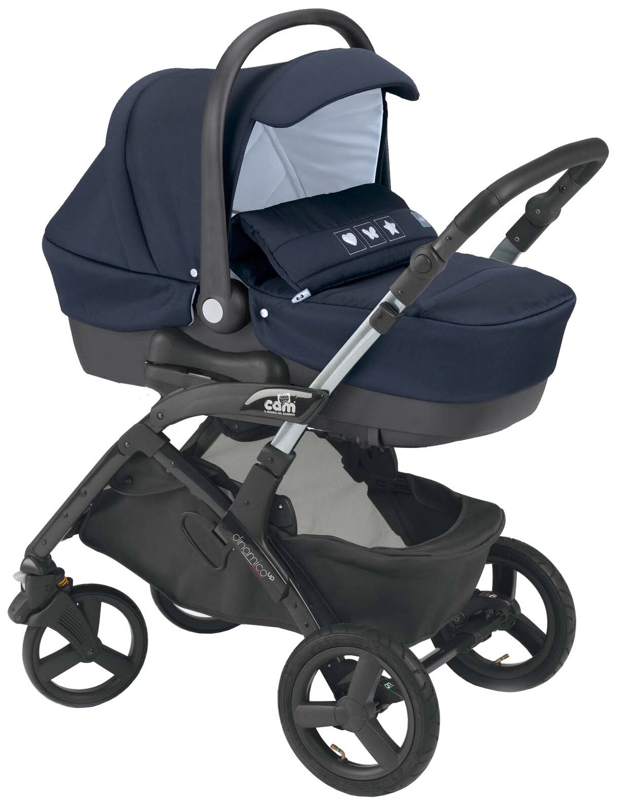 Особенность Cam Dinamico Up 3 в 1 Эксклюзивная особенность 3 в 1 вместе с дополнениями предусматривает: Модную сумку с пеленальным матрасиком . В комплекте вы можете найти вместительную сумку, в которую можно положить бутылочку с водой, печенье, салфетки и любые другие принадлежности .