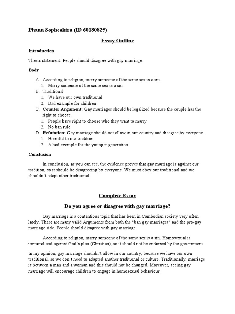 Same Sex Marriage Argumentative Essay, with Outline . . .
