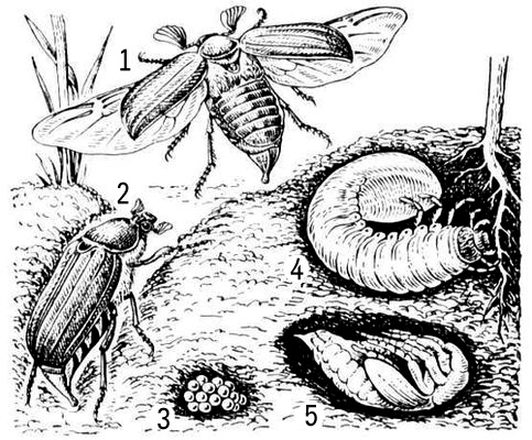 Майский жук - существо загадочное . В один год наблюдается массовое нашествие крупных, громогласных жуков, в другой По размерам самка майского жука несколько превышает самца . Особенности жизненного цикла . Хрущи относятся к насекомым с полным превращением .