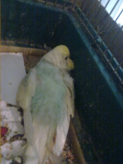 Самка волнистого снесла яйцо