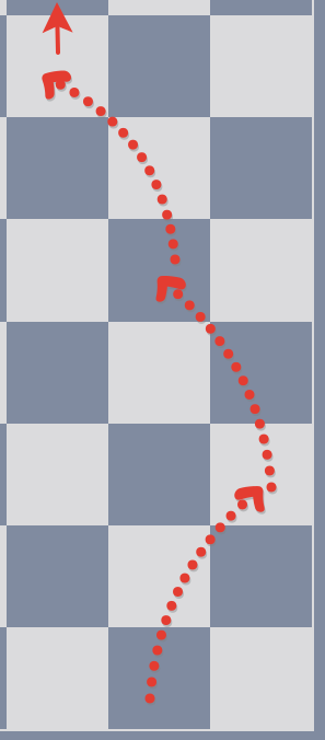 В проходе вновь находились шахматные клетки три в ширину и семь в длину. Тут мы вспомнили, что находили книгу по шахматам в библиотеке с подозрительной закладкой на странице, объясняющую принцип ходов за Коня. Я решил рискнуть, встал на среднее поле первого ряда, дождался, что никакая ловушка не сработала, привязал себя веревкой и отдал свободный конец Ванде (моя спутница). Прыгнул на плитку, как будто сходил конем - ловушка не сработала, и так я пропрыгал весь коридор, а следом остальные мои сотоварищи.
