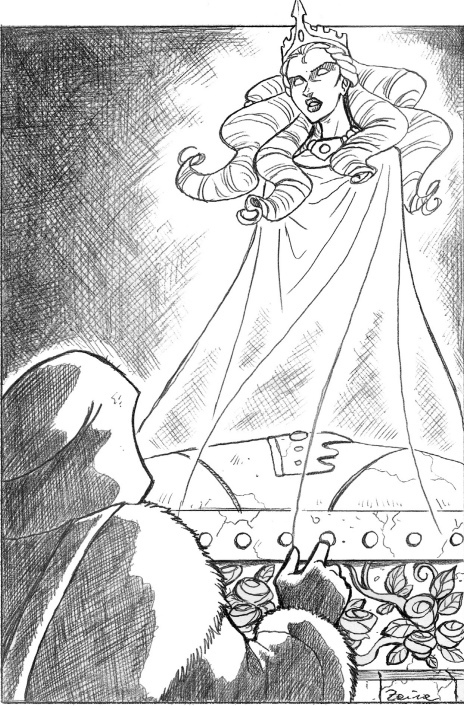 Вернувшись мы направились к могиле королевы, дабы доложить о выполненном долге, но ее уже не было, пешки, охранявшие ее рассыпались в прах, а саркофаг был открыт. Вероятно, ощутив свободу она немедля отправилась к рыцарю. В саркофаге мы обнаружили хорошую кольчугу, корону, явно магический кинжал и перстень с гербом короля.