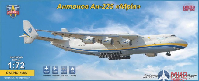 Ан-225 «Мрия» ( укр . Мрія: «Мечта», по кодификации НАТО: англ . Cossack «Казак») — советский (после 1991 года перешёл в собственность Украины) (транспортный реактивный самолёт сверхбольшой . . .