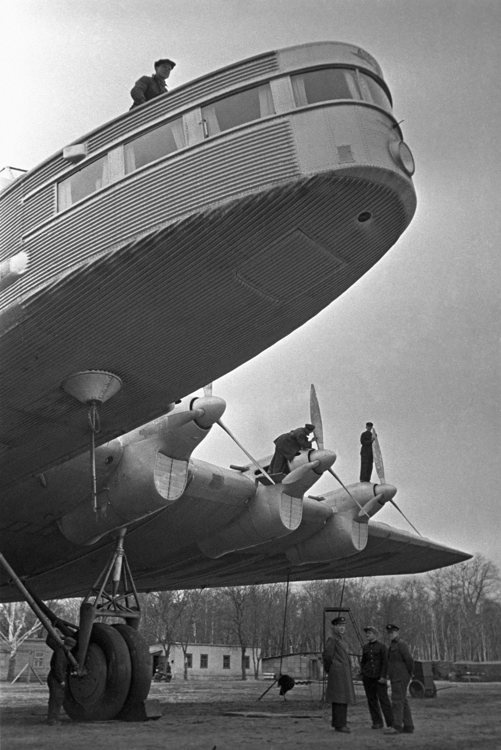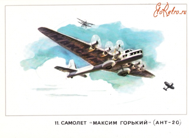 Туполев АНТ-20 «Максим Горький» Построенный в честь 40-летнего юбилея литературной деятельности Максима Горького, АНТ-20 с 8-ю моторами и размахом крыла в 61 метр был самым крупным самолетом своего времени .