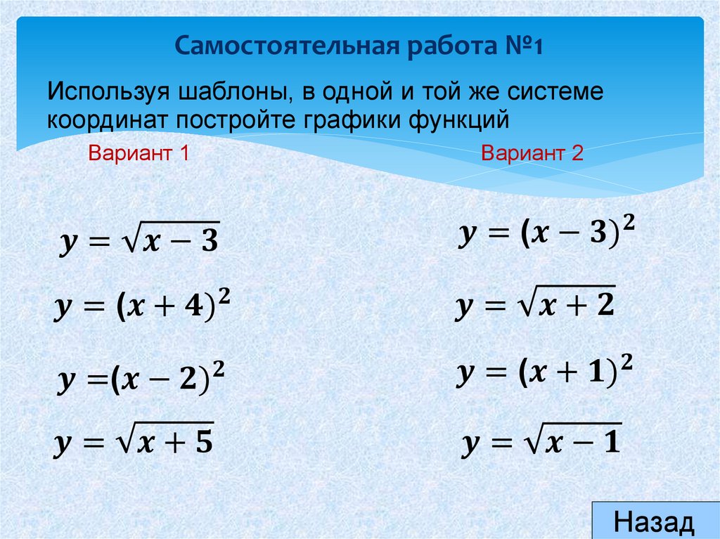 Самостоятельная работа преобразование графиков функций 10 класс
