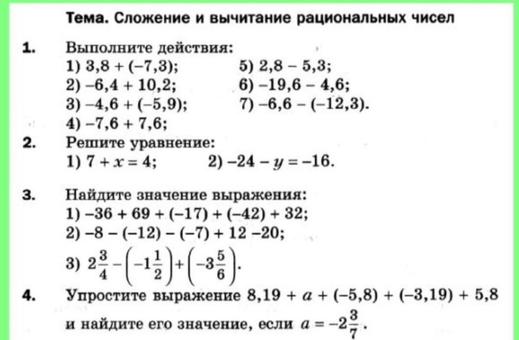 Самостоятельная работа вычитания рациональных чисел 44 фото
