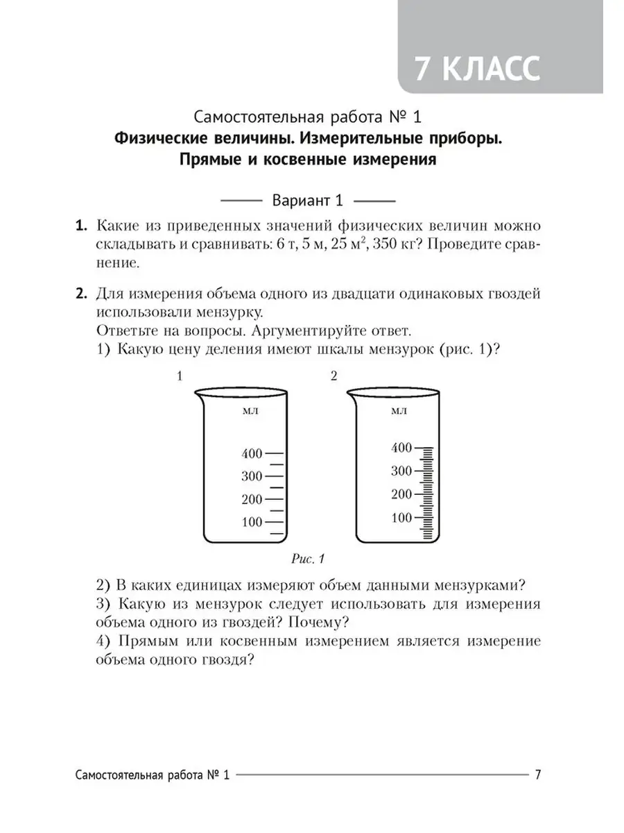Самостоятельные работы по физике седьмой класс