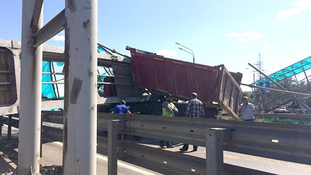 Самосвал снес мост