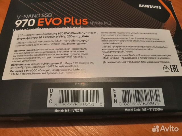 970 EVO SATA M .2 SSD 250ГБ - Samsung ru