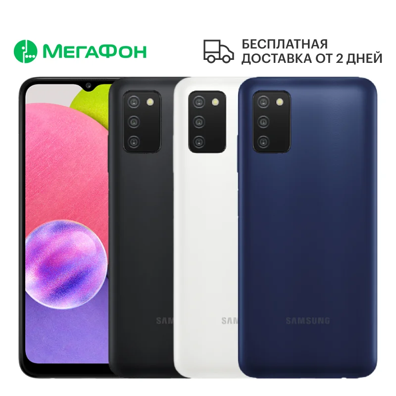 Смартфон Samsung Galaxy A03s 4/64GB A037 (черный) 4G . 6 .5 " . 13 Мп . 32 Гб 64 Гб . Черный . Бонус при покупке . 5 . гб .