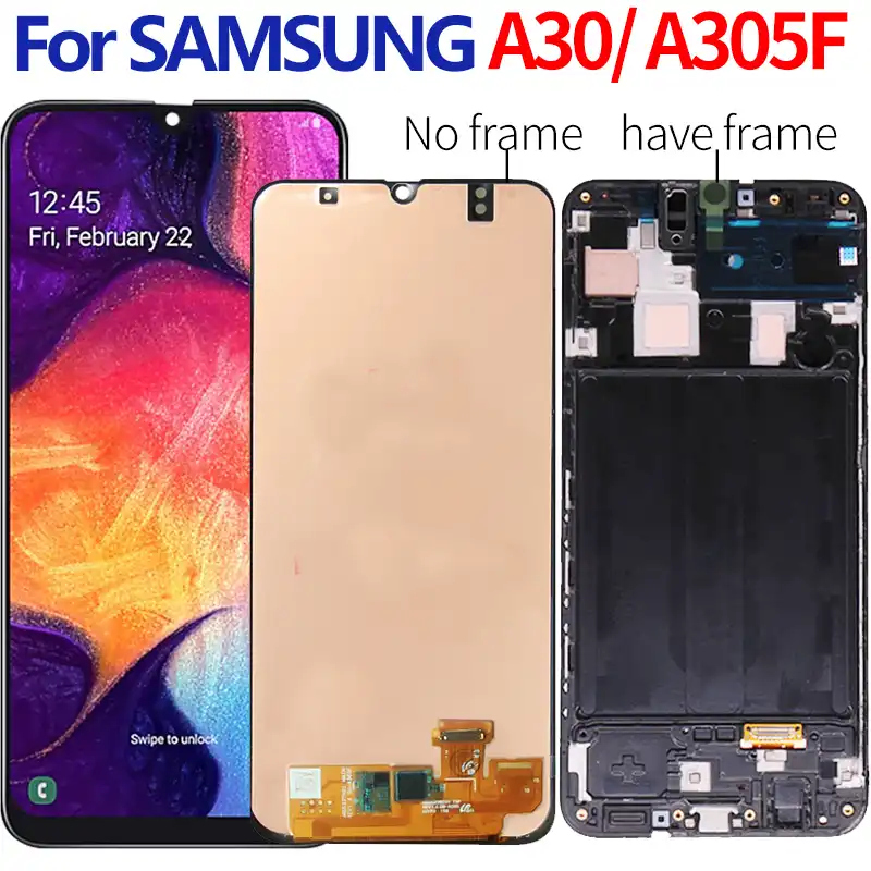 Samsung Galaxy A30 Samsung Galaxy A50 . Úhlopříčka 6,4" (68 × 148 mm) 6,4" (68 × 148 mm) Poměr k čelní straně 84 % 84 % . Typ Super AMOLED Super AMOLED . Rozlišení 1 080 × 2 340 bodů 1 080 × 2 340 bodů . Max . obnovovací frekvence 60 Hz 60 Hz .