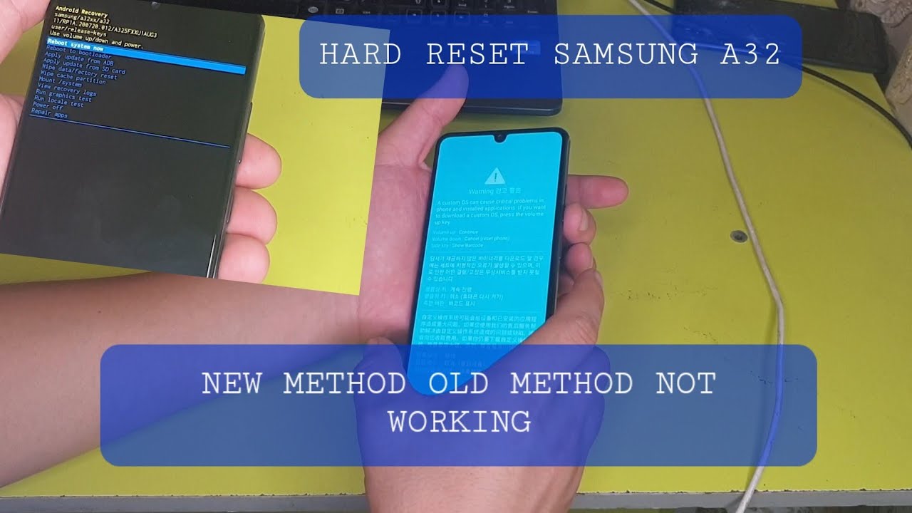 Hard Reset Your Samsung Galaxy A32 With Recovery Mode If you are not able to reach settings menu, you can do Samsung Galaxy A32 hard reset process via recovery mode . Usually, recovery mode is usable when you forget pattern lock or screen lock, the phone stuck in boot logo or restarts itself constantly .