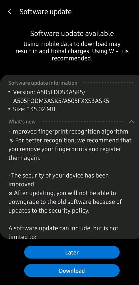 Samsung Galaxy A50 - Software Update Issue after unlocking phone and switching network