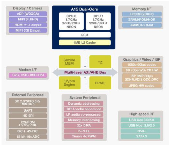Samsung Exynos 4 Dual 4210 released in 2011 is the 1 .0GHz Cortex-A9 dual-core mobile processor built on 45nm HKMG process, LPDDR2 RAM and eMMC 4 .41 .