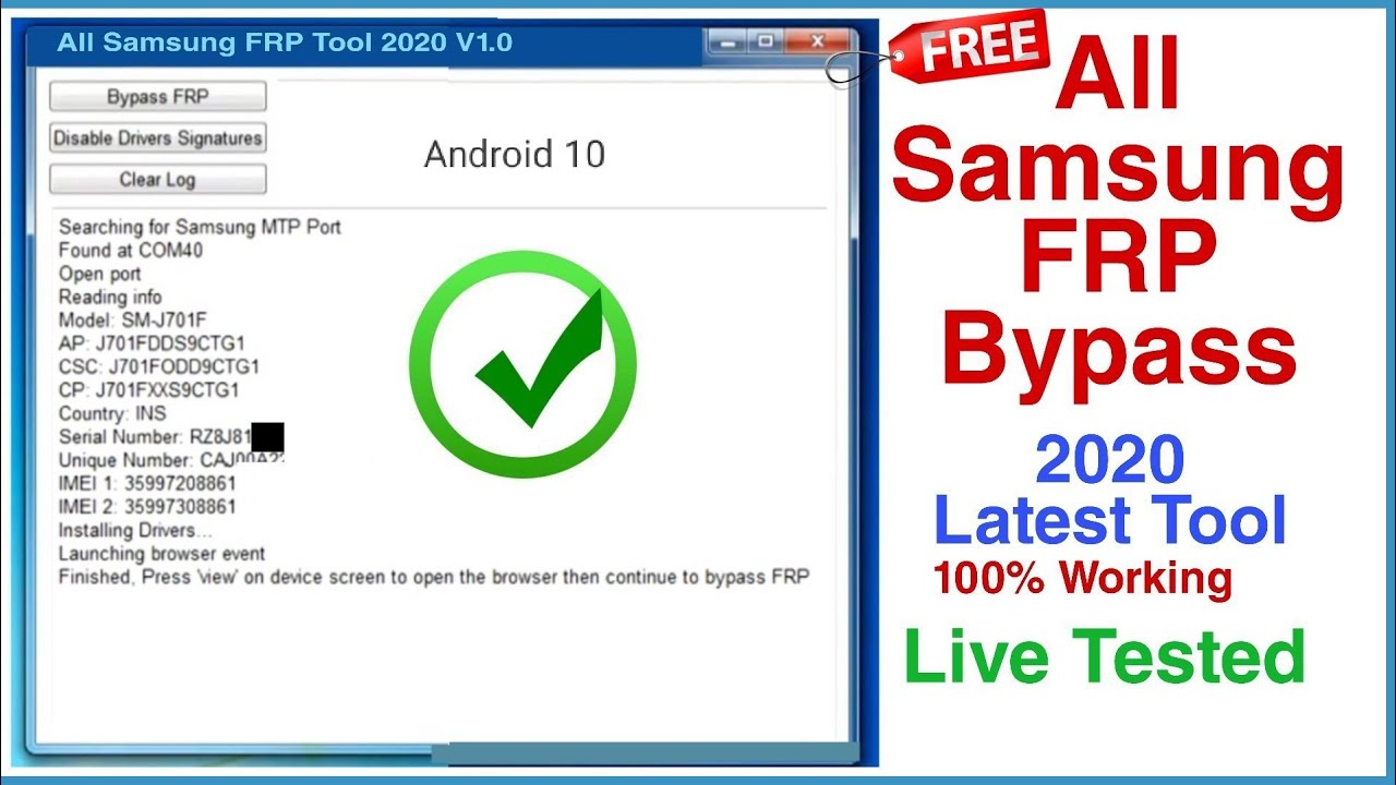 Samsung Frp 2020 V1 . Download . Tamanho: 12 .34 MB . Usar o Winrar para descompactar . Baixe a ferramenta Easy Samsung FRP . Ferramenta Samsung FRP fácil você pode ignorar qualquer modelo Samsung executado no Android 10, Android Pie, Android oreo sem qualquer Sim ou PIN, apenas em um clique para abrir o navegador facilmente em seu Samsung Mobile . . .