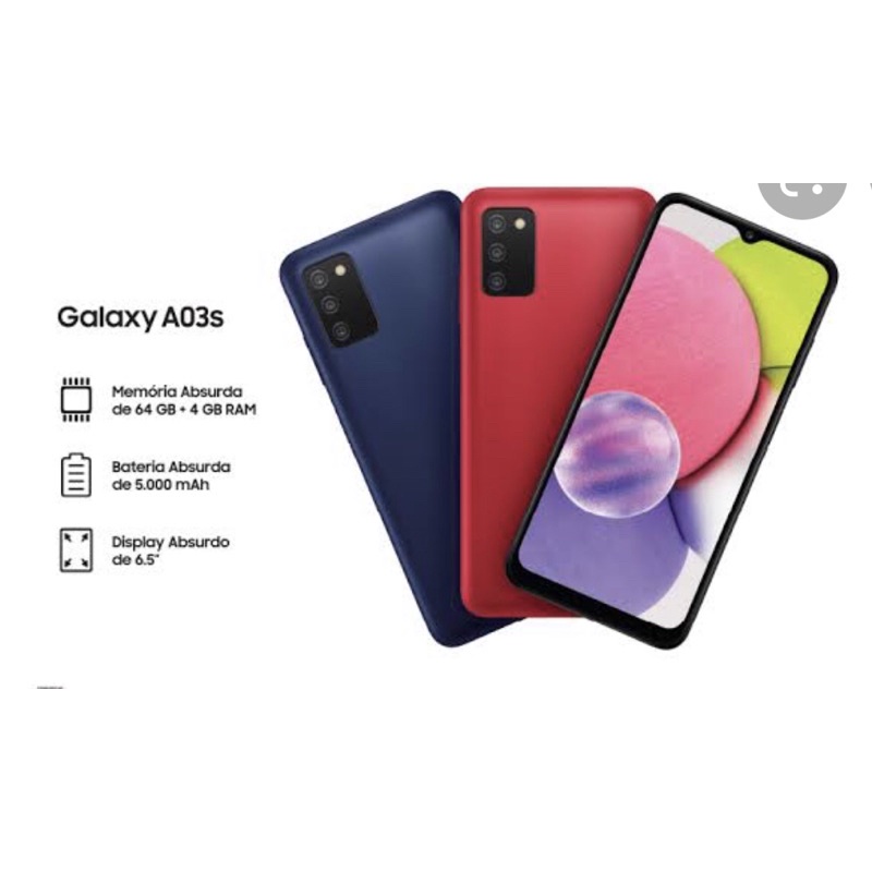 Samsung Galaxy A03s Android smartphone . Announced Aug 2021 . Features 6 .5″ display, MediaTek MT6765 Helio P35 chipset, 5000 mAh battery, 64 GB storage, 4 GB RAM .