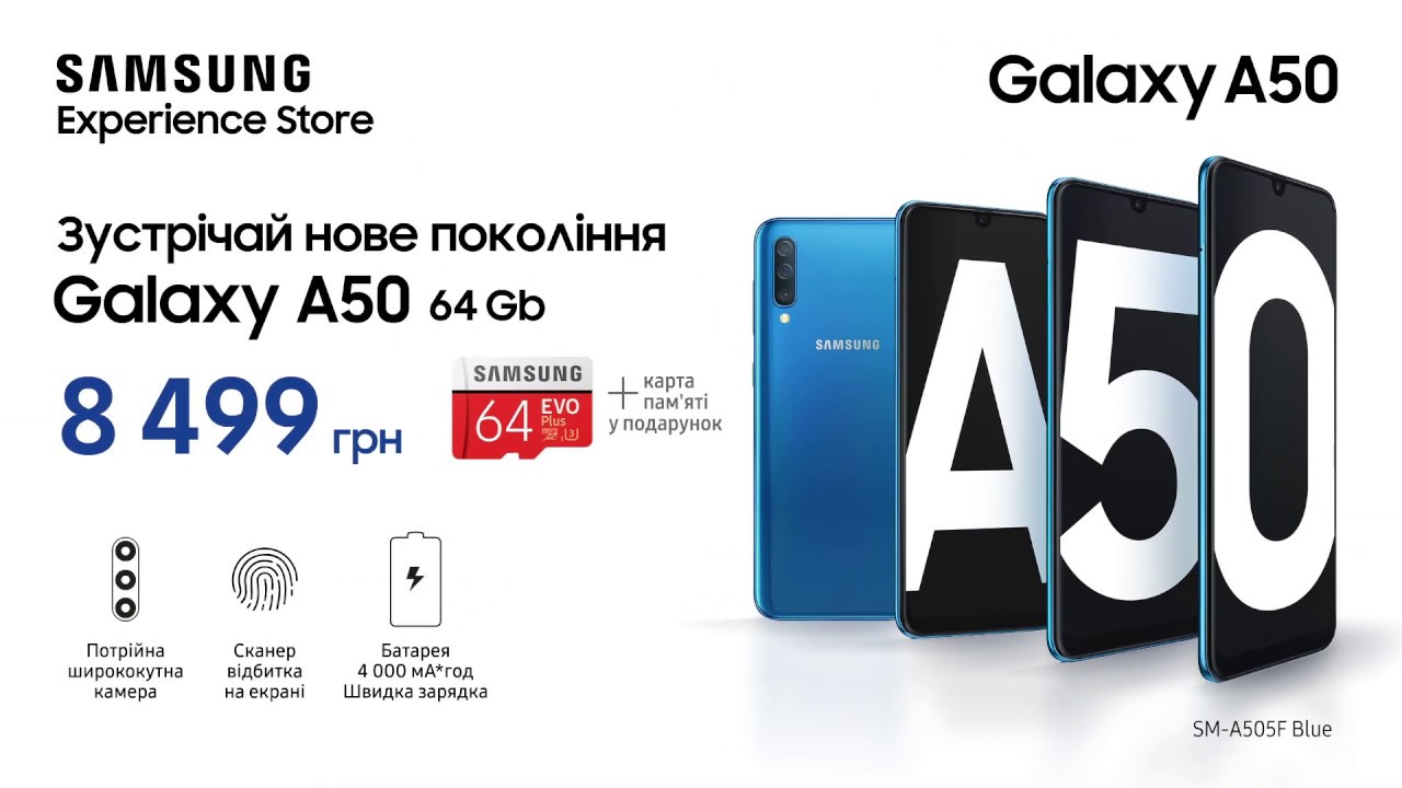 Смартфон Samsung Galaxy A50 A505FN 64GB Blue купить за 6199 грн закажи в магазине MOYO и забери сегодня ☎: 0 800 507 800 Выгодные цены Гарантия от производителя Оплата частями Рассрочка Быстрая доставка по Украине Фото Описание . . .