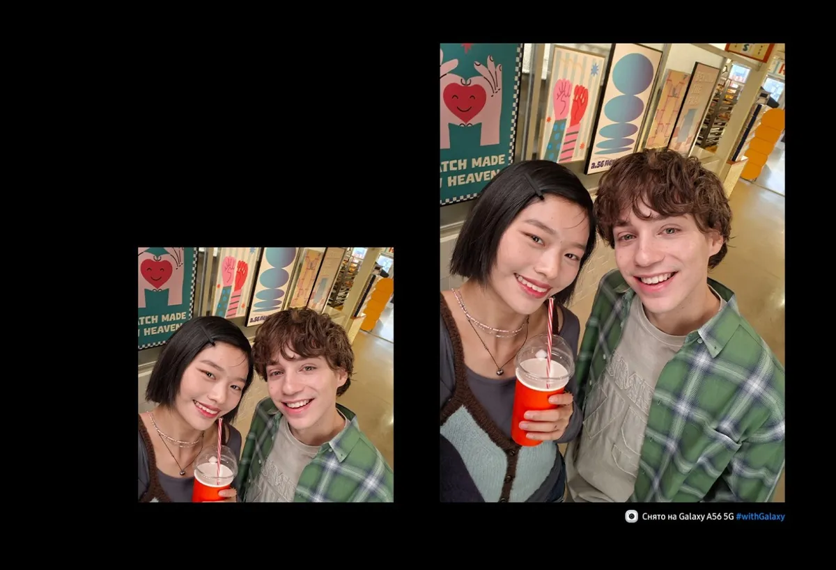 Теперь селфи можно отправить без обработки. Улучшенная фронтальная камера Galaxy A56 5G с разрешением 12 МП делает четкие и яркие снимки.