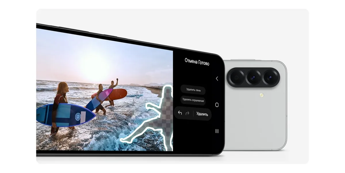 Снимайте потрясающие фото и видео на Galaxy A56 5G благодаря обновленной камере 50 МП. Она определяет небо, кожу, лица, волосы и траву и мгновенно улучшает качество изображения.